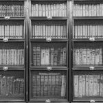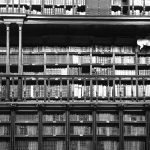 March 17, 2022. Puebla Mexico. Interior view of the Baroque style Palafoxiana Library with two levels of wood carved bookshelves and the golden engraved retable of the Madonna of Trapani.